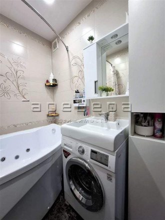 В санузле ванна с гидромассажем, стиральная машина, водонагреватель, сделан гигиенический душ. Балкон застеклен, сделана качественная отделка, встроенный шкаф.
