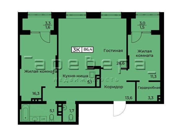Планировка квартиры изображает форму «Бабочки» - две уютные спальни с лоджиями по бокам от центральной кухни-гостиной, где у каждого свое личное пространство, но при этом вся семья всегда вместе за обедом, чашкой чая или просто за душевными беседами!