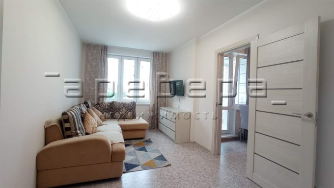 телевизор- умный от Сбербанка (монитор), посуда, пылесос ручной, люстра с пультом управления (изменяет яркость и оттенок), шторы, ковер.