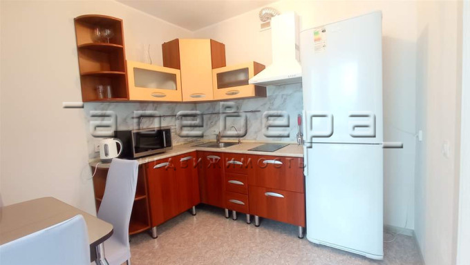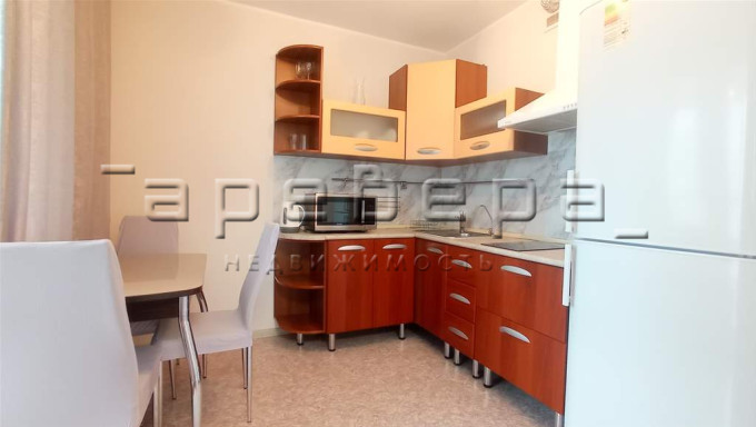 кухонный гарнитур, холодильник, хорошая вытяжка и варочная панель, микроволновка с функцией гриль;