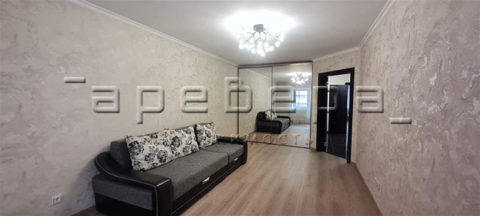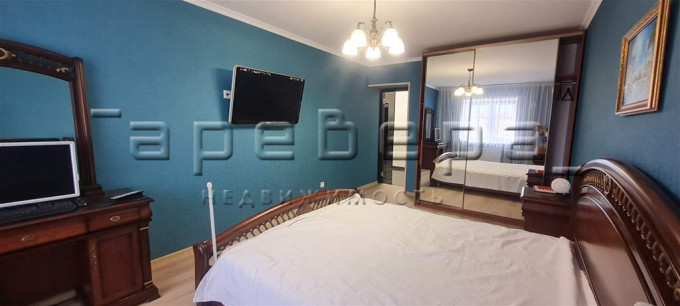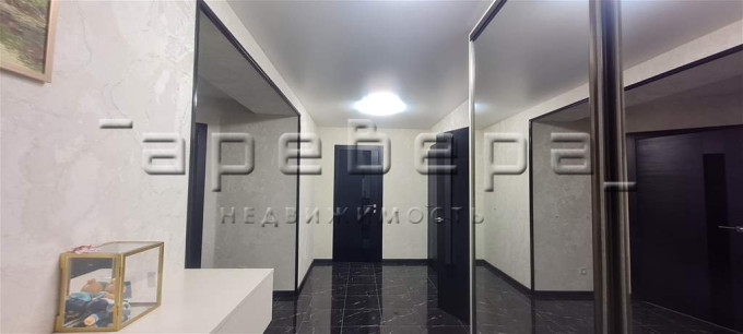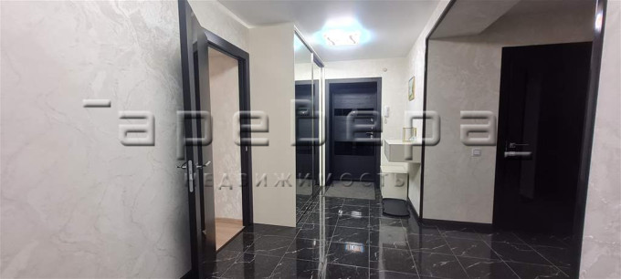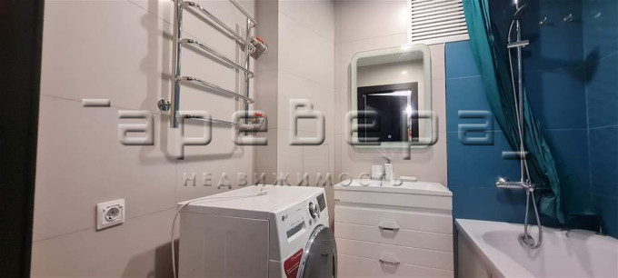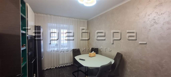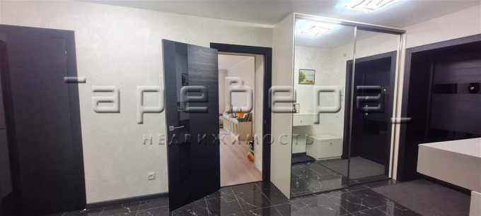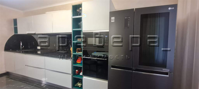 При продаже остается современная кухня с техникой и встроенные шкафы.