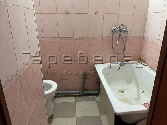 Гостинка расположена на 5 этаже 5-ти этажного дома, требует ремонта, состояние жилое, на полу линолеум, стены покрашены, окно пластиковое. Санузел совмещен, отделан кафелем, установлена небольшая ванна.
