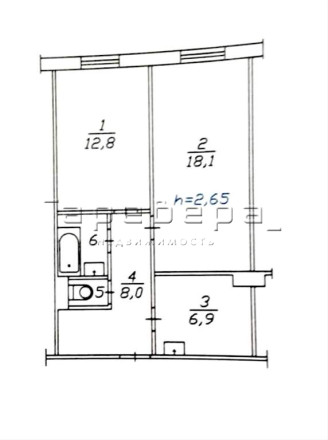 Высота потолков 2, 65 м..