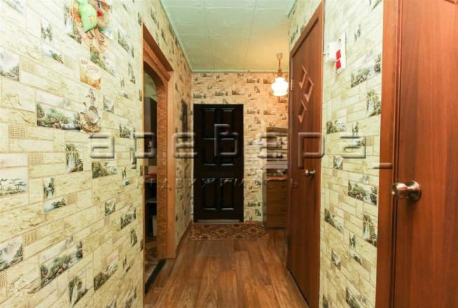 Планировка квартиры удобная — комнаты раздельные, санузел раздельный. Ремонт косметический — на полу линолеум, на стенах обои.