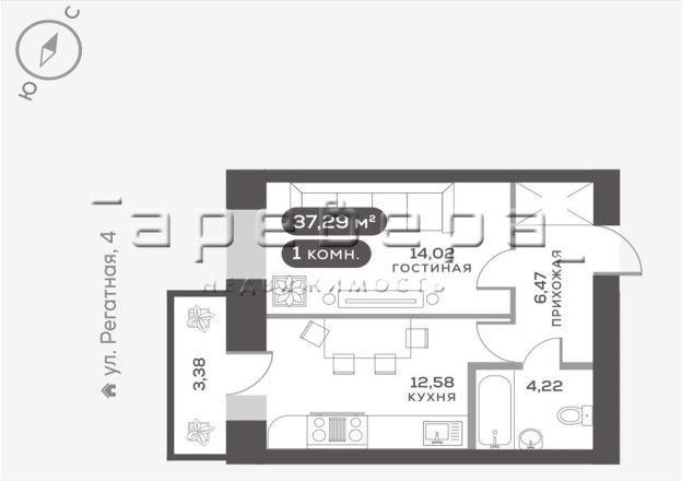 Описание:Предлагаю купить 1-ком в новом доме мкр Южный берег по ул. Регатная,3.