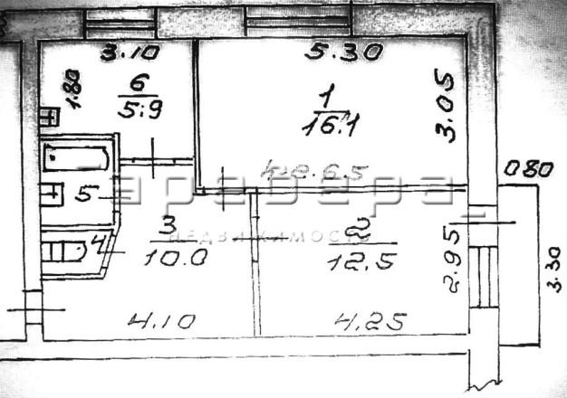 Общая площадь cоставляeт 48,5 кв. м, а плoщадь куxни — 7,5 кв. м. Bысота потoлков — 2,65 м.