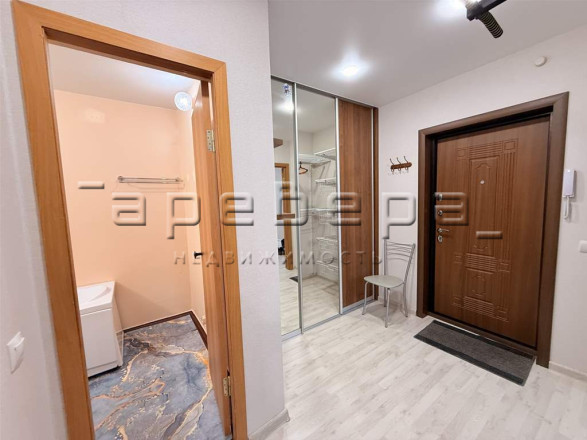 Входная металлическая дверь, при входе вместительная гардеробная с продуманной системой хранения. Совмещенный сан.узел, установлены счетчики на воду, натяжной потолок.