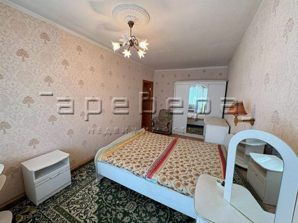 Что остаётся: Кухонный гарнитур, обеденный стол со стульями, шкаф-купе, диван, стиральная машина, книжный шкаф, кровать. Всё для проживания — заезжай и живи.