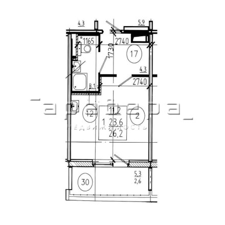 Грамотная планировка: жилая зона (23.8 м).