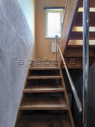 В доме выполнен хороший ремонт. Окна ПВХ, на стенах — качественные обои, на полу ламинат, в санузлах кафель. Теплые полы в санузле на первом этаже и прачечной в цоколе. Новым собственникам остается кухонный гарнитур с дубовыми фасадами, встроенная техника, встроенный шкаф на первом этаже, мебель в кабинете (кроме кресел), детская кровать и гардеробные.